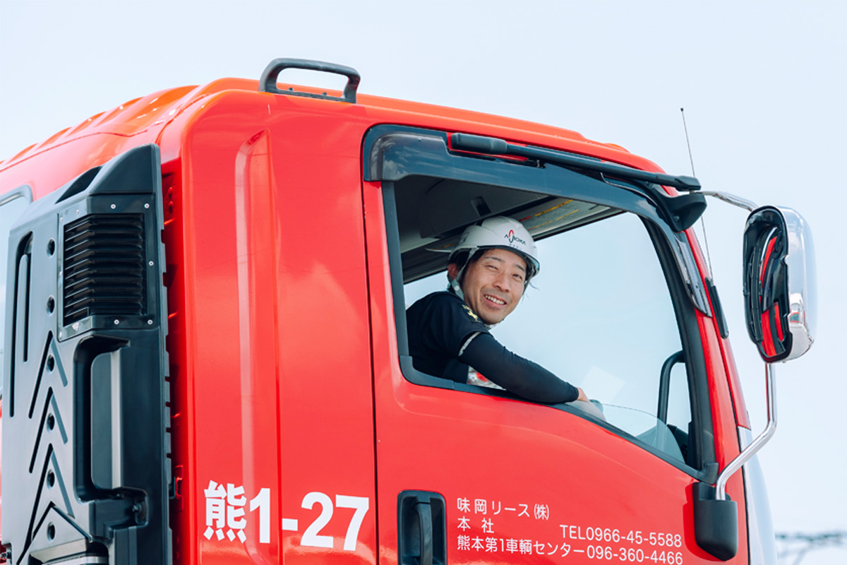 私は以前、自衛隊に勤務していましたが、もともと運転が好きで、大型車両を扱う仕事に挑戦したいと考えていました。そんな中、父の友人からの勧めで味岡リースを紹介してもらい、興味を持ちました。特にミキサー車は建設現場に欠かせない存在であり、運転技術を活かしながら社会に貢献できる点に魅力を感じています。これまで培った責任感や規律を活かし、安全運転を徹底しながら業務に取り組んでいきたいと考えています。