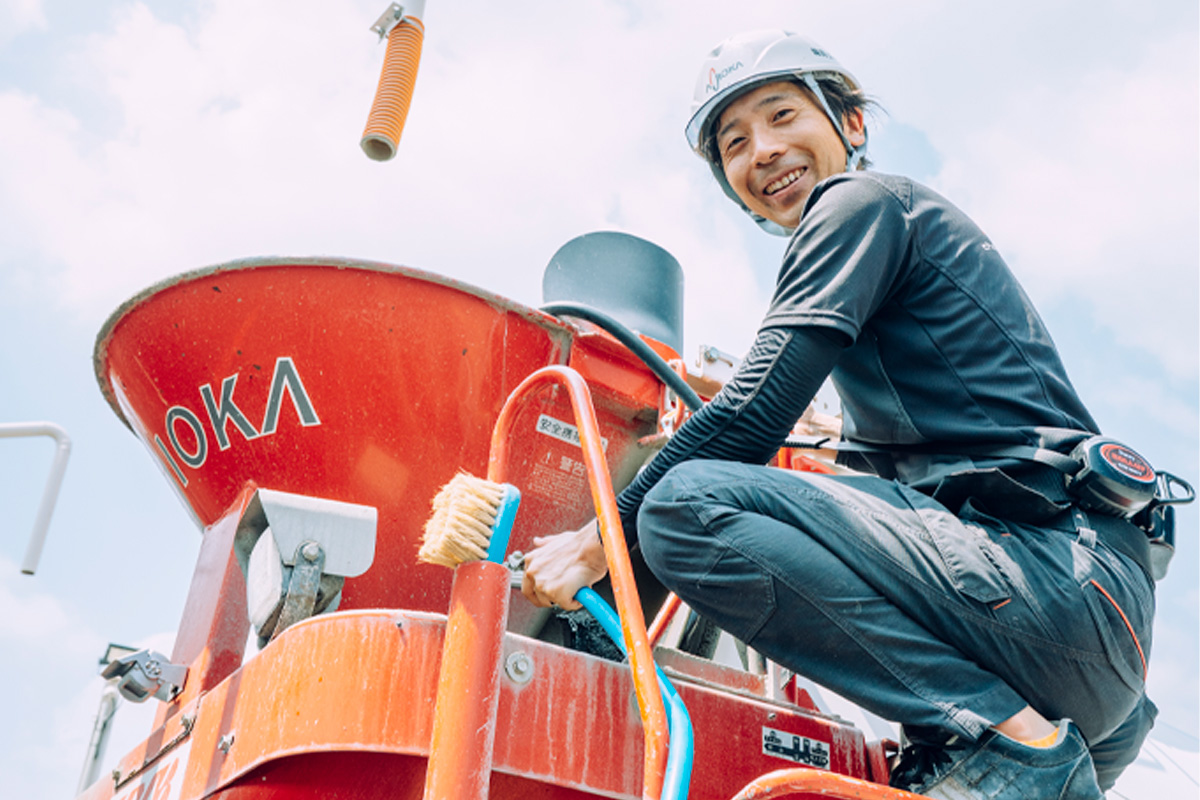主に、生コンクリートを工場から建設現場まで運搬する仕事です。工場で生コンを積み込み、攪拌しながら指定時間内に安全運転で輸送します。現場の方々と連携し、的確に荷下ろしを行うチームワークが不可欠です。業務後にはコンクリートが固まる前に車両を洗浄し、安全運行のための点検も欠かせません。品質・時間・安全の管理が求められる、社会基盤を支える重要な仕事です。